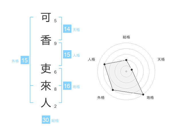 可香 吏來人さんの外格は15画の4点!