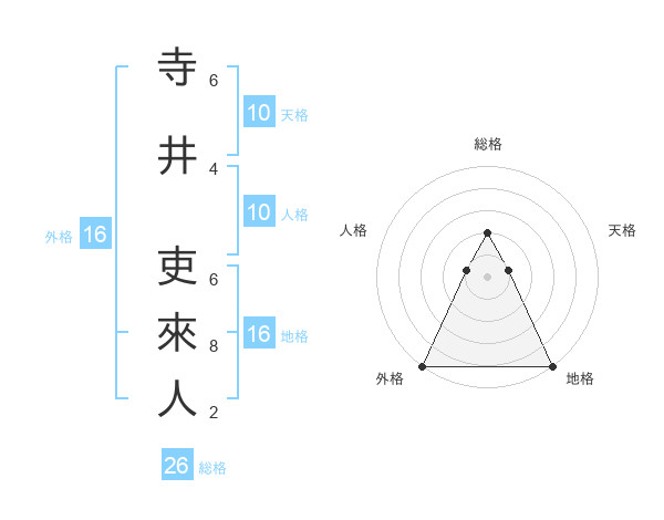 寺井 吏來人さんの外格は16画の5点!