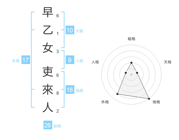 早乙女 吏來人さんを姓名の画数から五運を鑑定