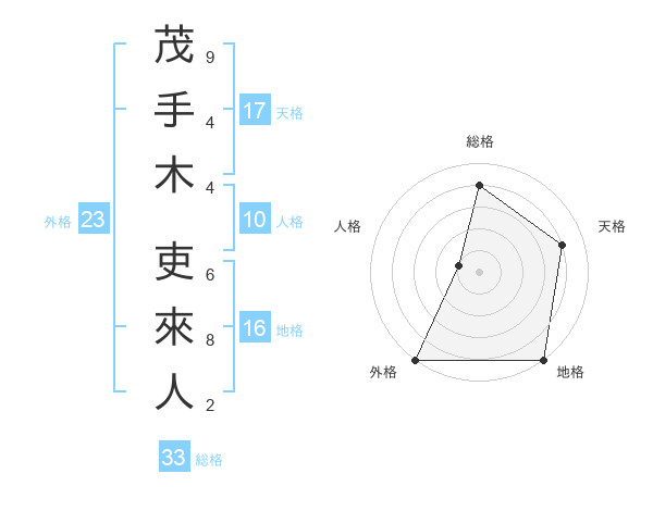 茂手木 吏來人さんを姓名の画数から五運を鑑定