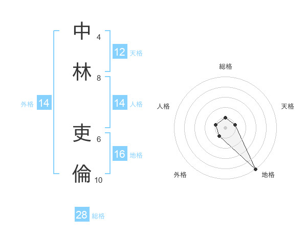 中林 吏倫さんの天格は12画の1点!