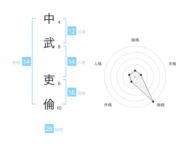 中武 吏倫さんを姓名の画数から五運を鑑定