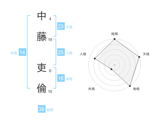 中藤 吏倫さんの天格は23画の5点!
