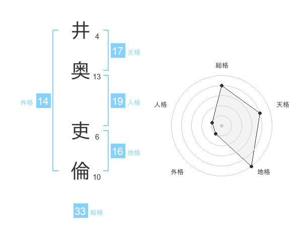 井奥 吏倫さんの天格は17画の4点!