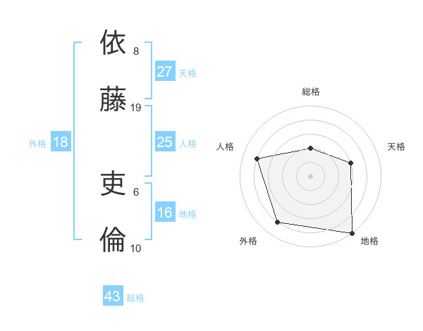 依藤 吏倫さんを姓名の画数から五運を鑑定