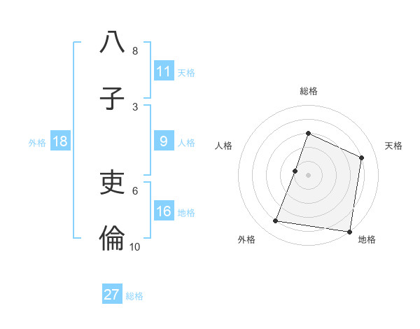 八子 吏倫さんを姓名の画数から五運を鑑定