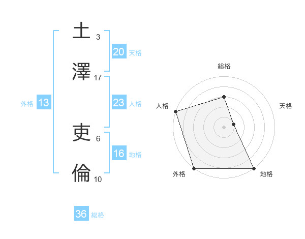 土澤 吏倫さんの外格は13画の5点!