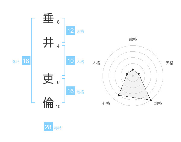 垂井 吏倫さんの天格は12画の1点!