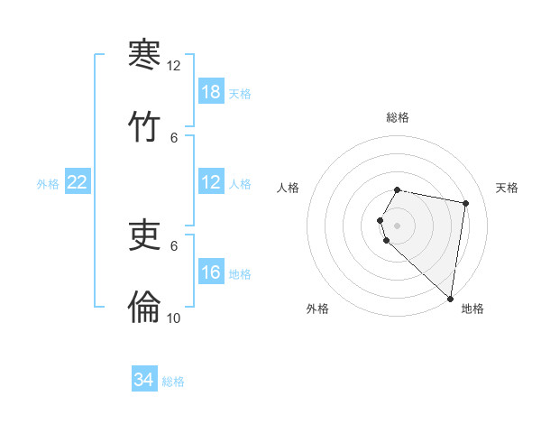 寒竹 吏倫さんの天格は18画の4点!