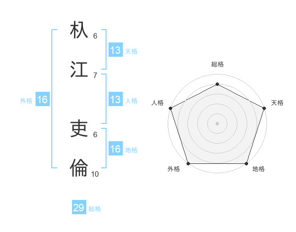 杁江 吏倫さんの天格は13画の5点!