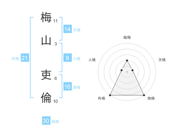 梅山 吏倫さんを姓名の画数から五運を鑑定