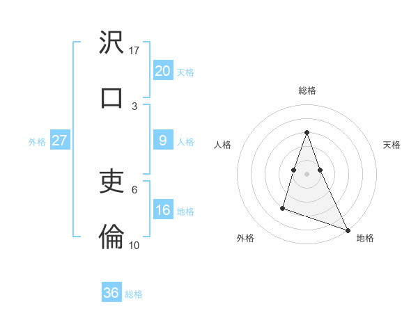 沢口 吏倫さんの総格は36画の3点!