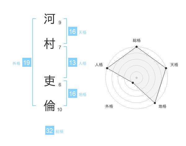 河村 吏倫さんを姓名の画数から五運を鑑定
