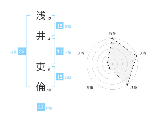 浅井 吏倫さんの天格は16画の5点!