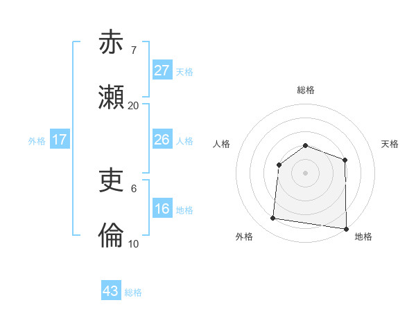 赤瀬 吏倫さんを姓名の画数から五運を鑑定