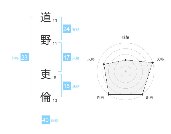 道野 吏倫さんの天格は24画の5点!