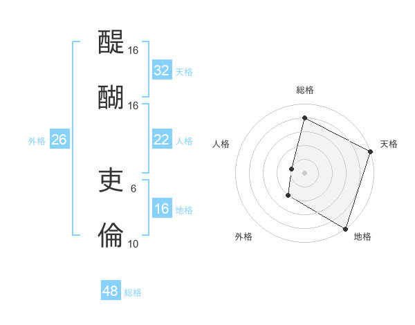 醍醐 吏倫さんを姓名の画数から五運を鑑定