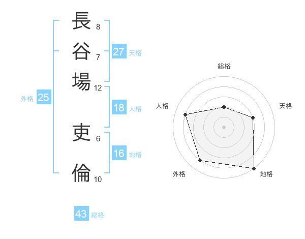 長谷場 吏倫さんを姓名の画数から五運を鑑定