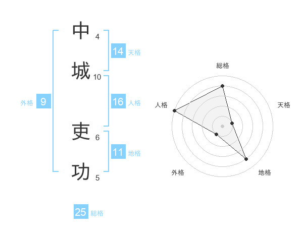 中城 吏功さんの総格は25画の4点!