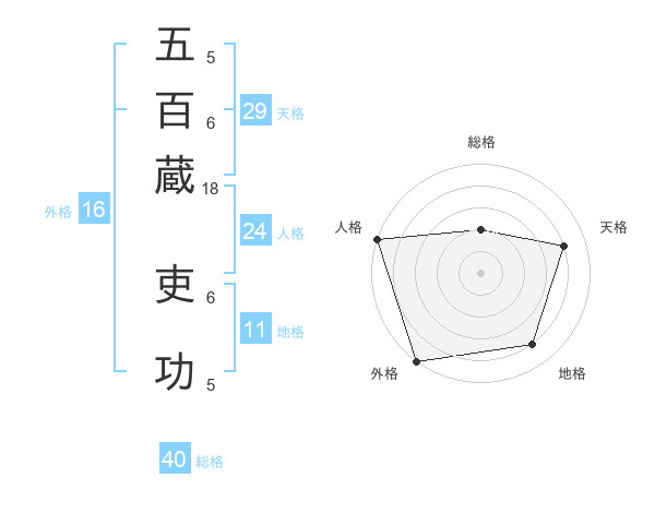 五百蔵 吏功さんを姓名の画数から五運を鑑定