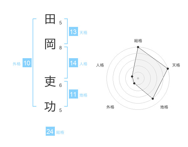 田岡 吏功さんを姓名の画数から五運を鑑定