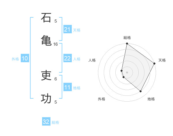 石亀 吏功さんを姓名の画数から五運を鑑定