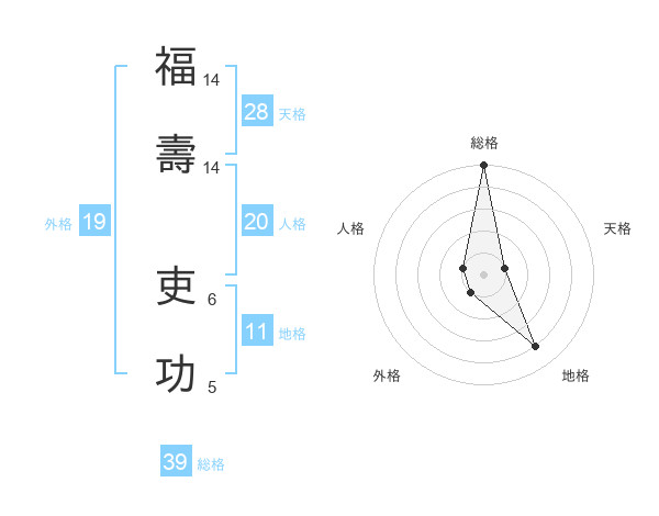 福壽 吏功さんを姓名の画数から五運を鑑定