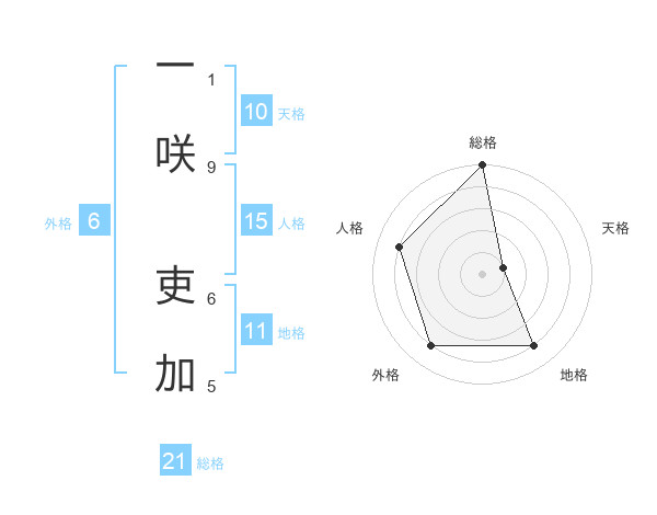 一咲 吏加さんの総格は21画の5点!