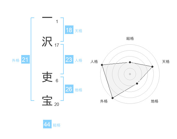一沢 吏宝さんの天格は18画の4点!