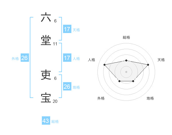 六堂 吏宝さんの総格は43画の2点!