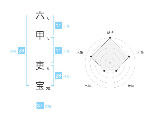 六甲 吏宝さんの総格は37画の5点!