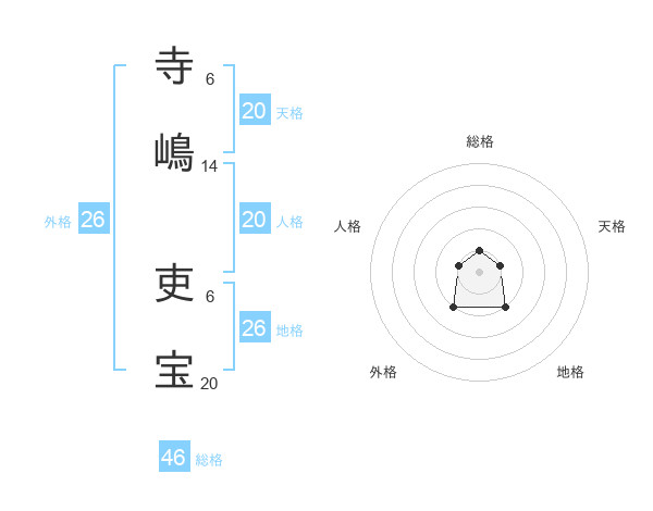 寺嶋 吏宝さんを姓名の画数から五運を鑑定
