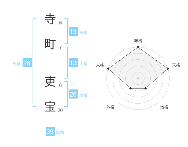 寺町 吏宝さんを姓名の画数から五運を鑑定