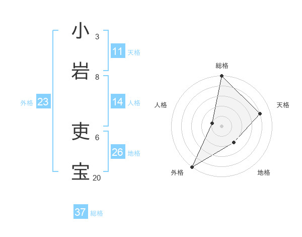 小岩 吏宝さんを姓名の画数から五運を鑑定