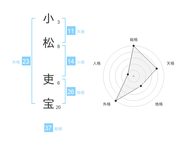 小松 吏宝さんを姓名の画数から五運を鑑定
