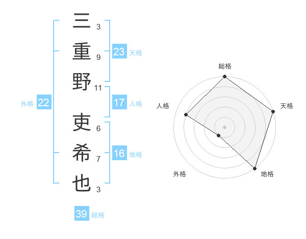 三重野 吏希也さんを姓名の画数から五運を鑑定
