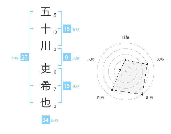 五十川 吏希也さんを姓名の画数から五運を鑑定