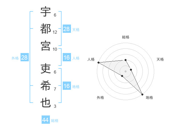 宇都宮 吏希也さんを姓名の画数から五運を鑑定