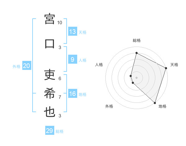 宮口 吏希也さんを姓名の画数から五運を鑑定
