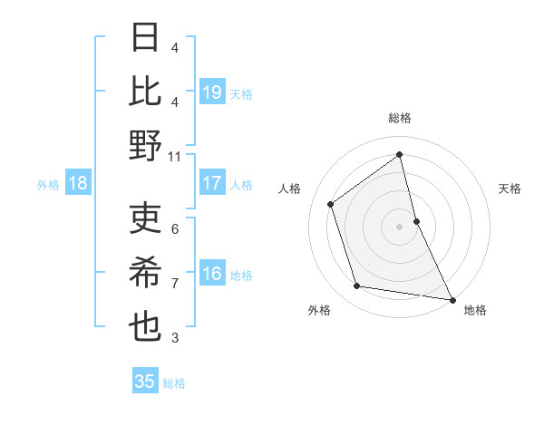 日比野 吏希也さんの総格は35画の4点!