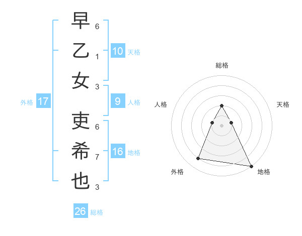 早乙女 吏希也さんを姓名の画数から五運を鑑定