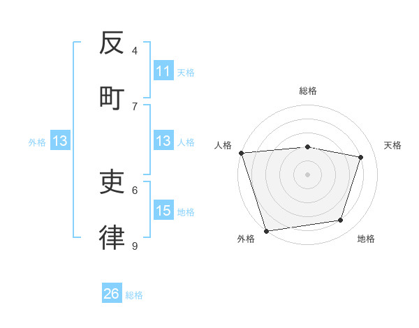 反町 吏律さんを姓名の画数から五運を鑑定