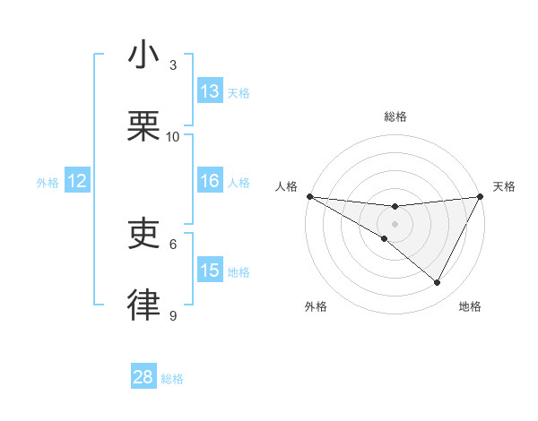 小栗 吏律さんを姓名の画数から五運を鑑定