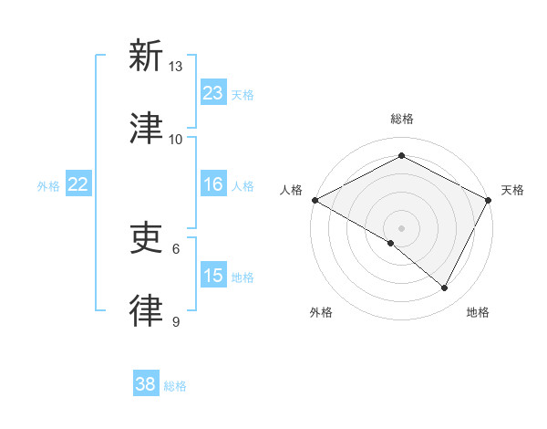 新津 吏律さんの天格は23画の5点!