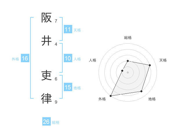 阪井 吏律さんを姓名の画数から五運を鑑定