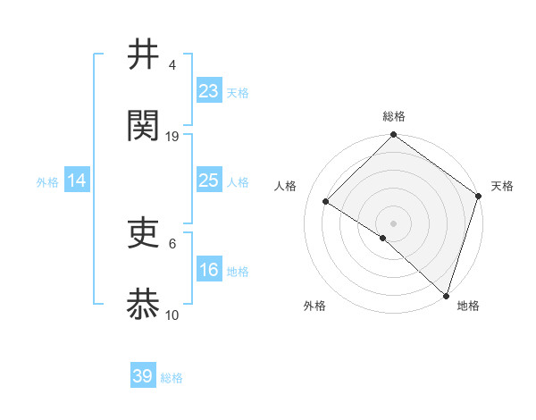 井関 吏恭さんの天格は23画の5点!