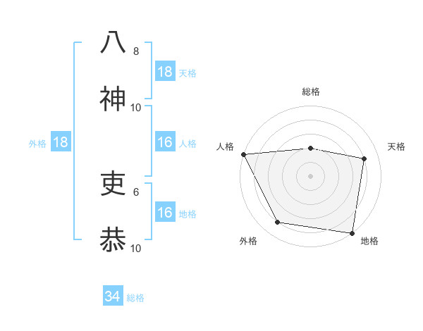 八神 吏恭さんを姓名の画数から五運を鑑定