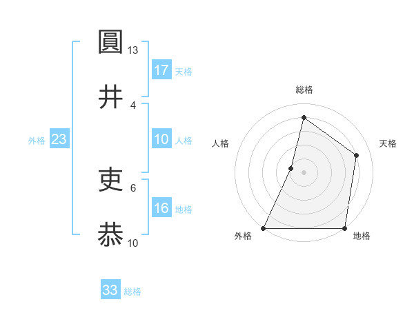 圓井 吏恭さんの総格は33画の4点!