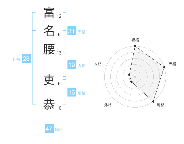 富名腰 吏恭さんの天格は31画の5点!