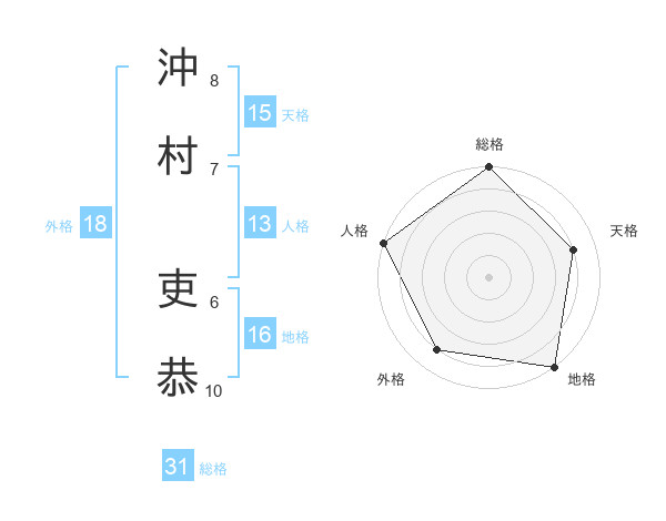 沖村 吏恭さんの総格は31画の5点!